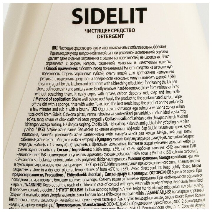 Универсальный чистящий крем GraSS Sidelit Удаление грязи для кухни и ванной 500 мл