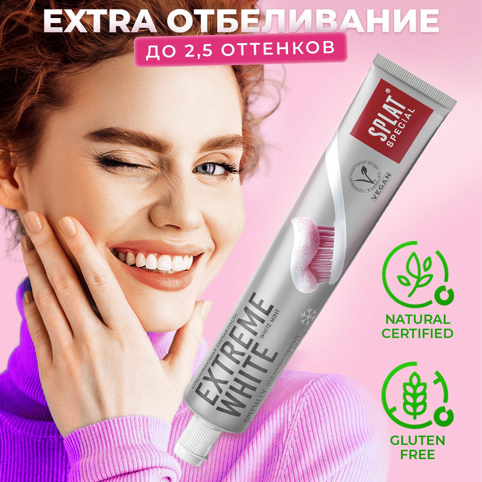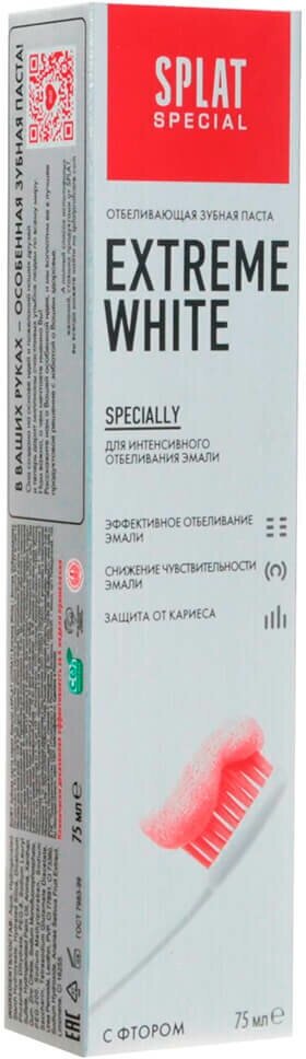SPLAT Special Зубная паста для эффективного отбеливания на 2 тона EXTREME WHITE / экстра отбеливание, 75 мл.
