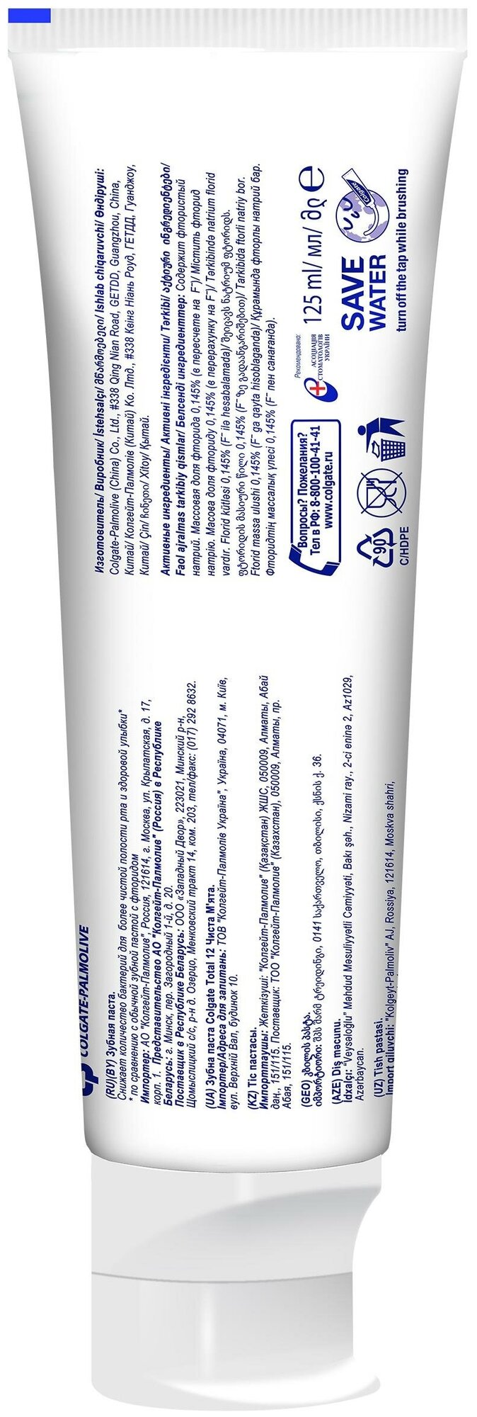 Colgate Total 12 Чистая Мята комплексная антибактериальная зубная паста, 125 мл
