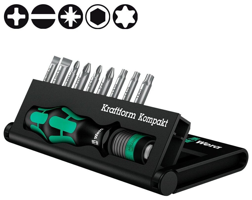 Kraftform Kompakt 10 набор бит с отвёрткой-битодержателем, 10 пр. Wera WE-056653
