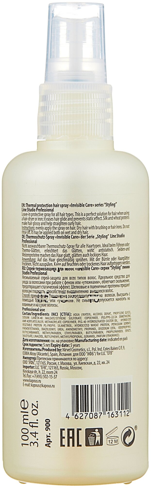 KAPOUS STUDIO INVISIBLE CARE спрей термозащита 100МЛ