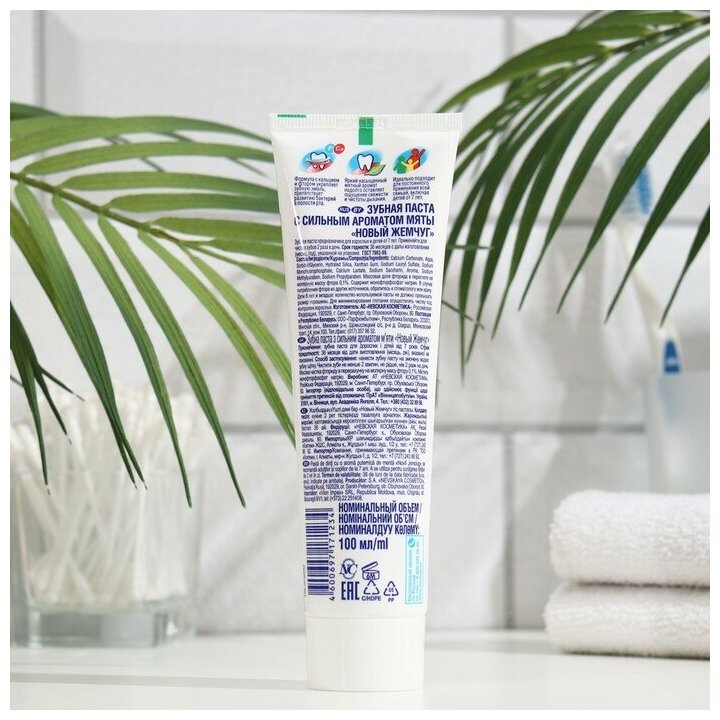Невская косметика Зубная паста "Новый жемчуг"", с сильным ароматом мяты, 100 мл