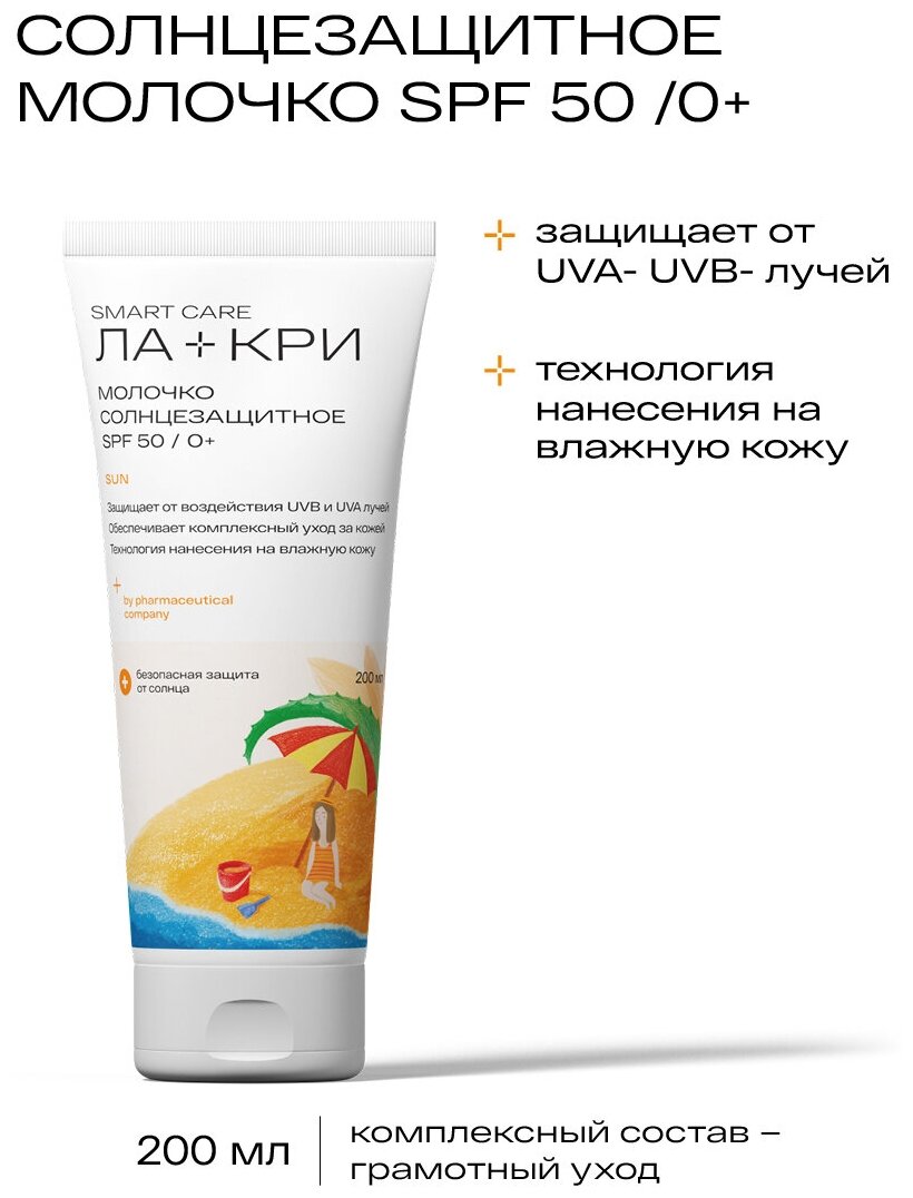 Ла-Кри Детское солнцезащитное молочко Smart Care SPF50 0+, 200 мл