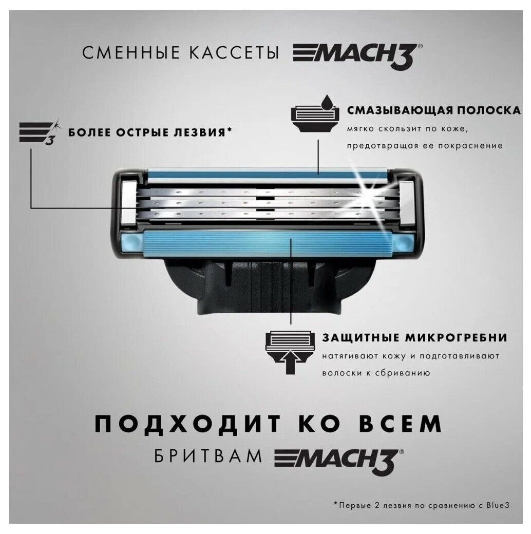Gillette Сменные кассеты для бритья Mach3, с 3 лезвиями, прочнее, чем сталь, для точного бритья, 2 шт. - 6 шт