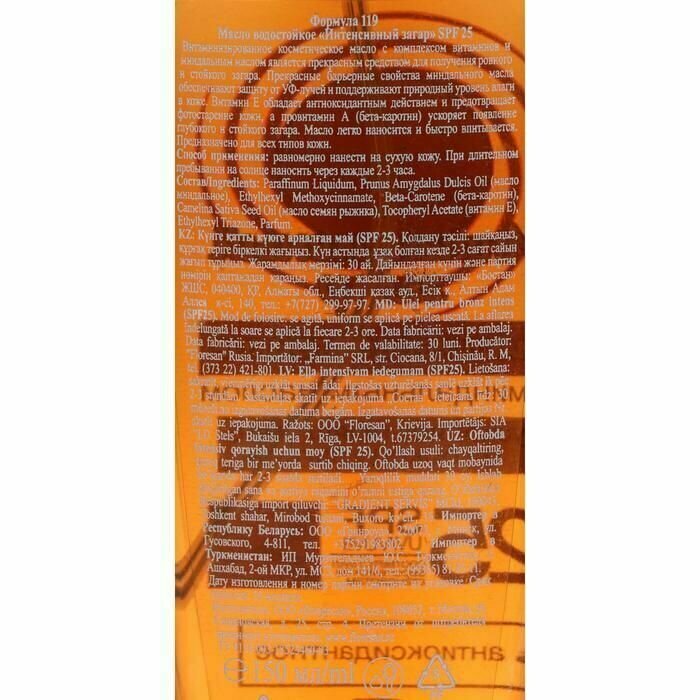 Масло водостойкое Интенсивный загар SPF 25, 150 мл Floresan 102741 .