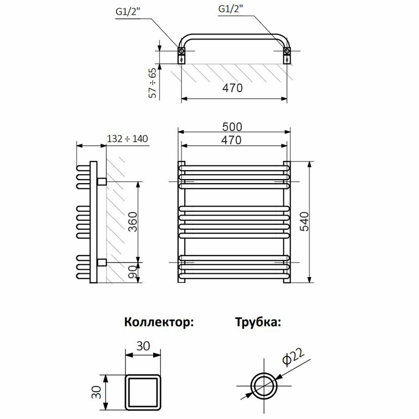 Водяной полотенцесушитель Aquanet Mauro(г2) 800x500