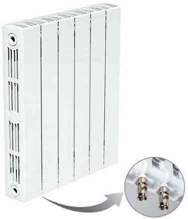 Радиатор биметаллический монолитный Rifar Supremo Ventil 350 6 секций, нижнее правое подключение (SVR350-6)