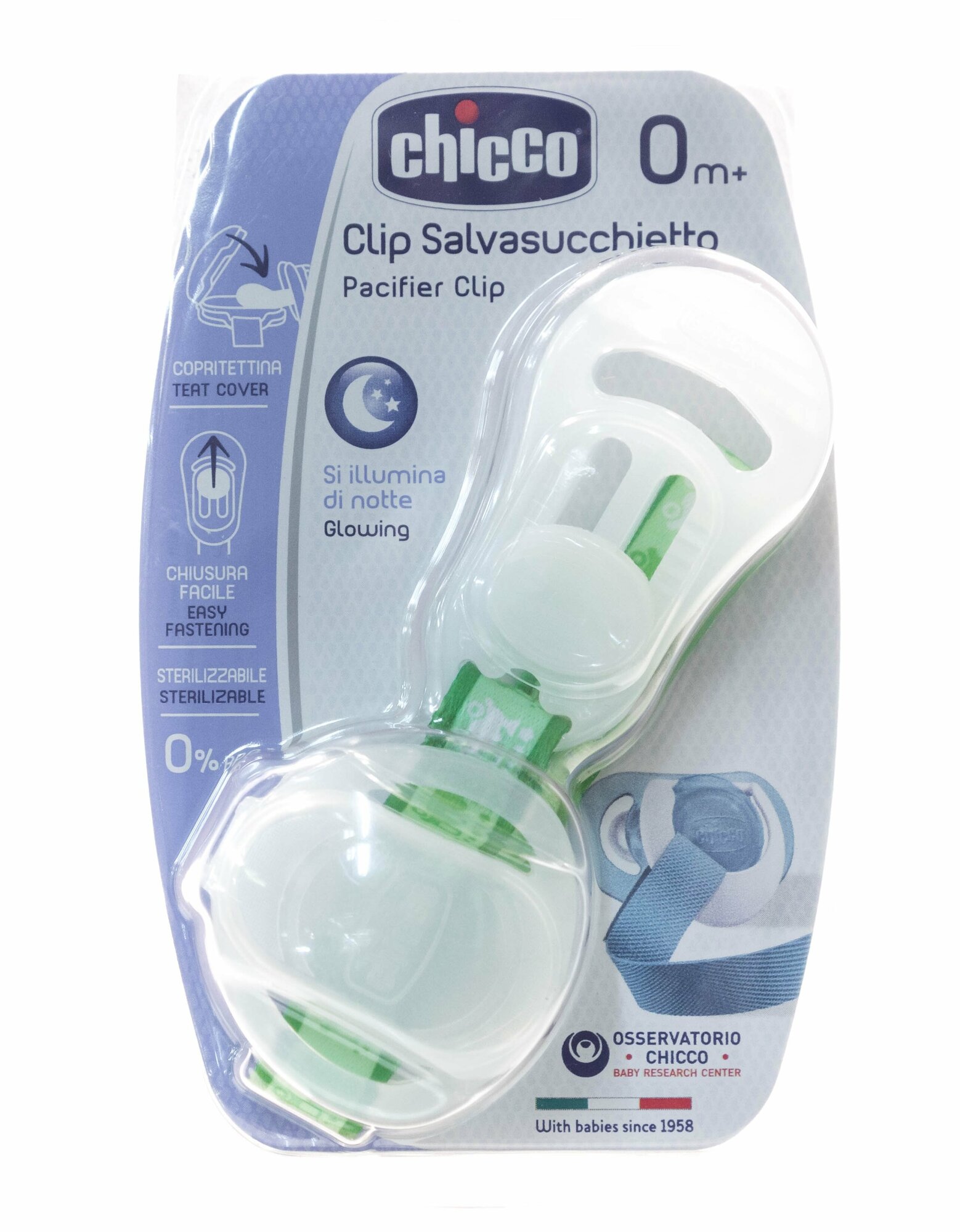 Chicco 310411105 Клипса-держатель для пустышки с футляром, зеленый