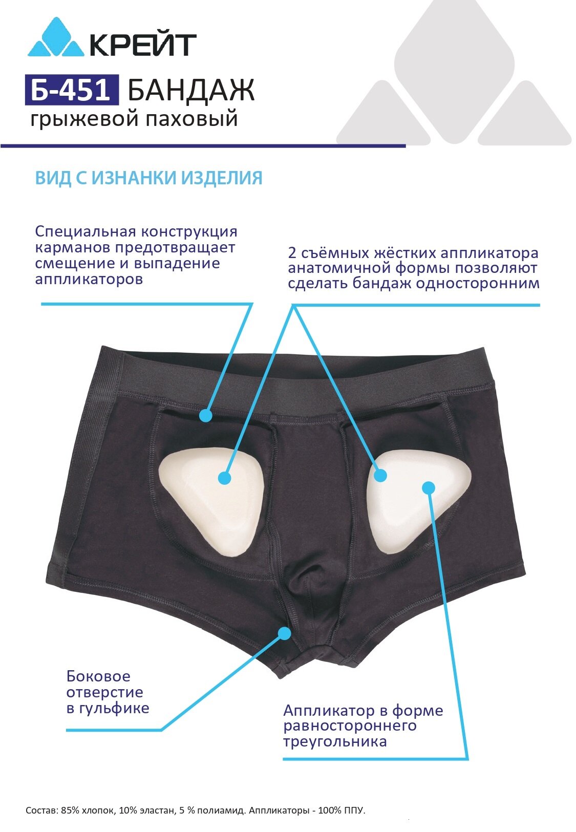 Б-451 Бандаж грыжевой паховый - "Крейт", №3, черный