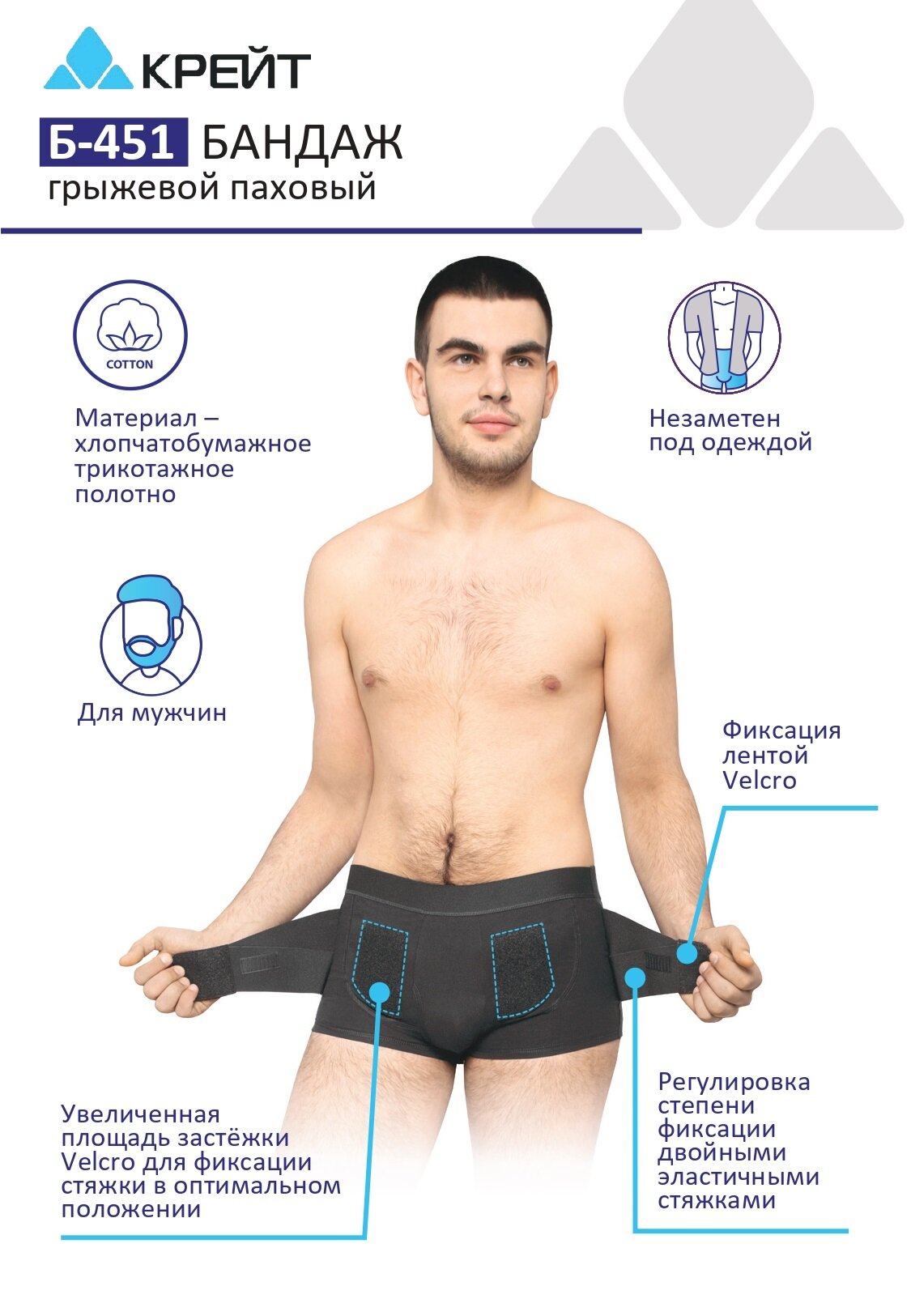 Б-451 Бандаж грыжевой паховый - "Крейт", №4, черный