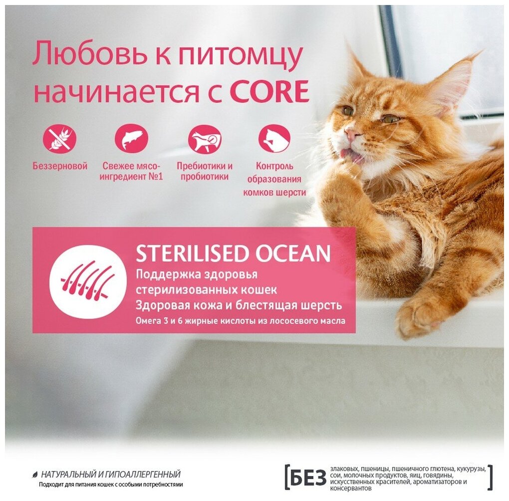 CORE ORIGINAL CAT ADULT STERILISED беззерновой для взрослых кастрированных котов и стерилизованных кошек с лососем (1,75 кг)