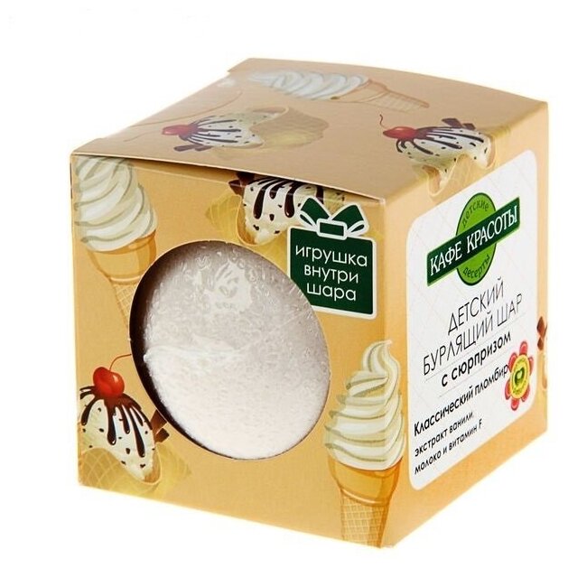 Кафе красоты Шарик для ванны бурлящий с сюрпризом-игрушкой Классический пломбир, 120 мл, 120 г