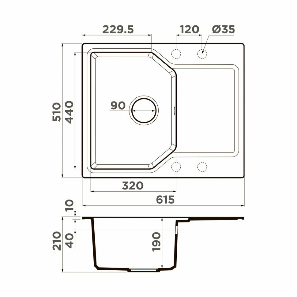 Врезная кухонная мойка LEX Maury 510