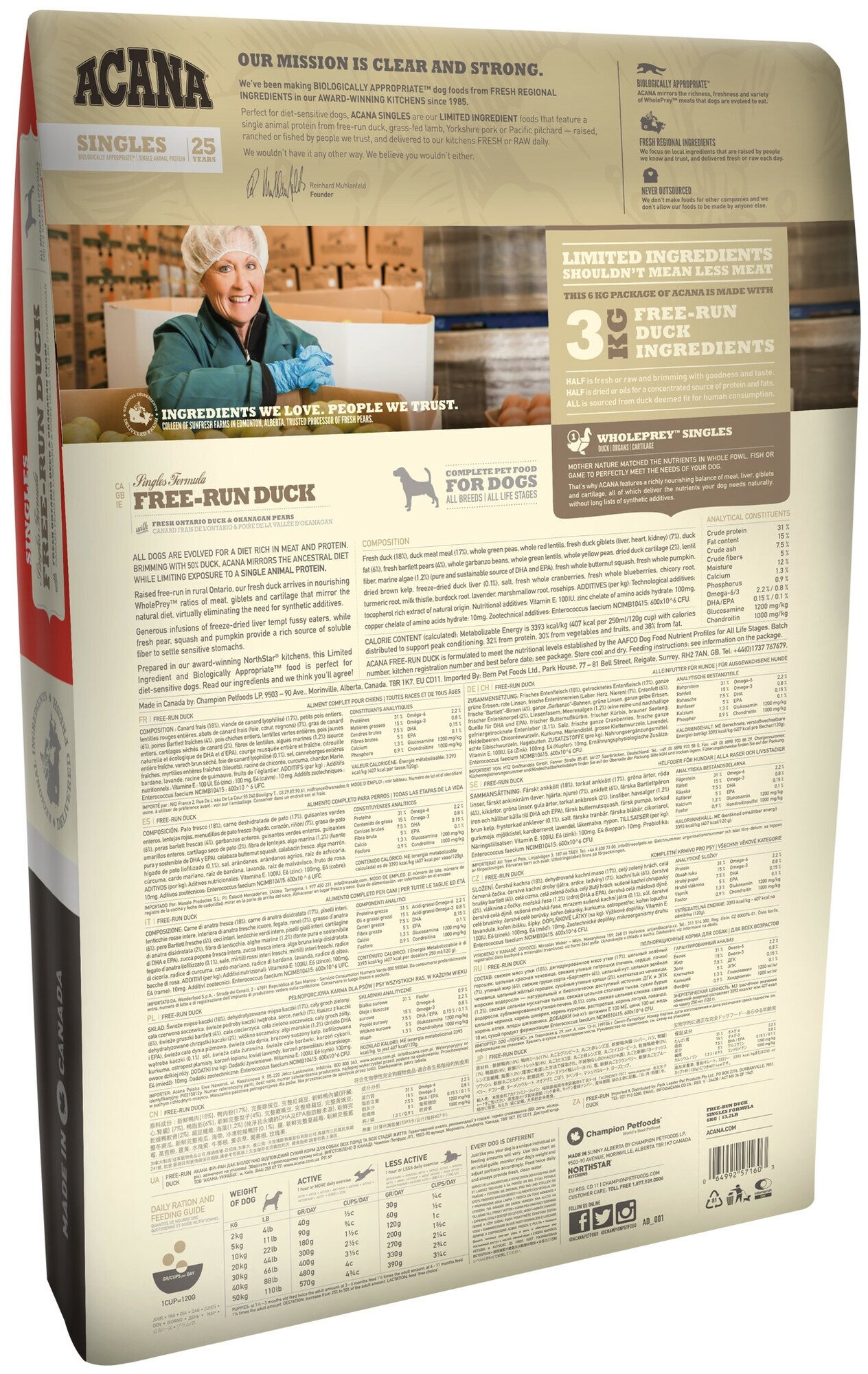 Купить Сухой беззерновой корм для собак Acana Singles Dog Free-Run Duck 11,4кг.