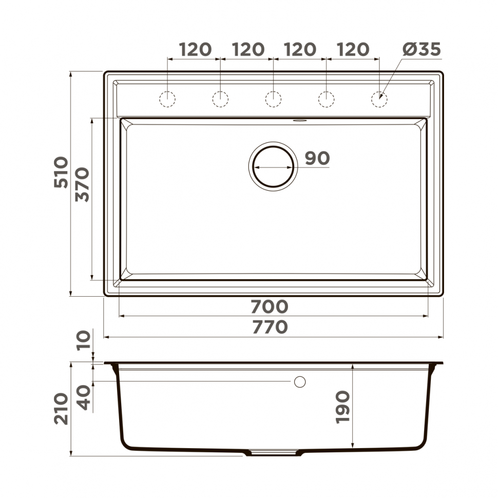 Кухонная мойка OMOIKIRI Daisen 77-DC (770 x 510 мм), врезная, Artgranit, темный шоколад Omoikiri 4993629