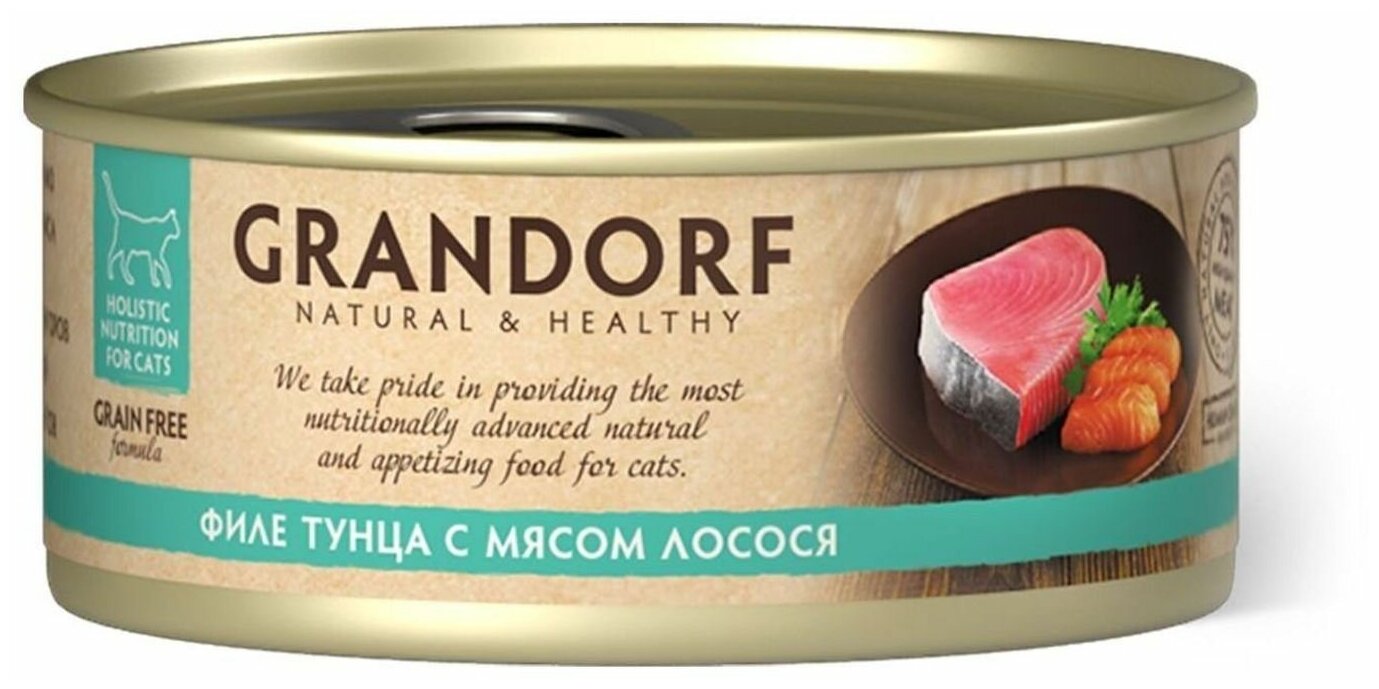 Консервы для кошек GRANDORF Филе тунца с лососем для всех возрастов 70 г
