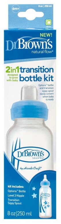 СохранитьБутылочка антиколик Dr. Brown's с узким горлышком, с соской от шести мес. и мягким силиконовым носиком для питья, Синяя, 250 мл интересное: