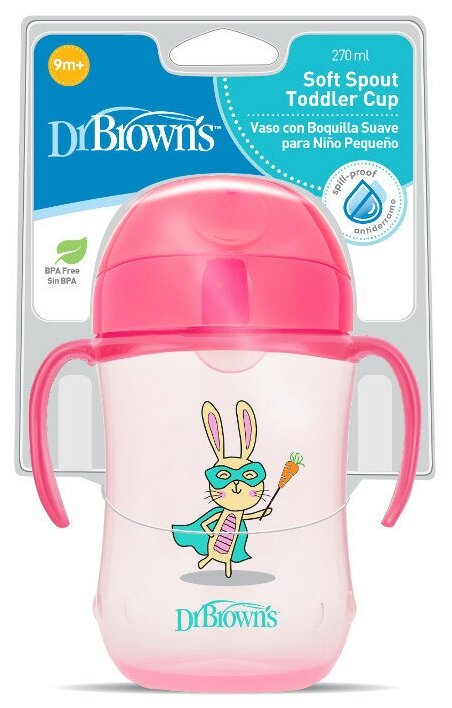 Поильник Dr. Brown's с откидывающейся крышкой, 9+ мес, Розовый Супергерой, 270 мл