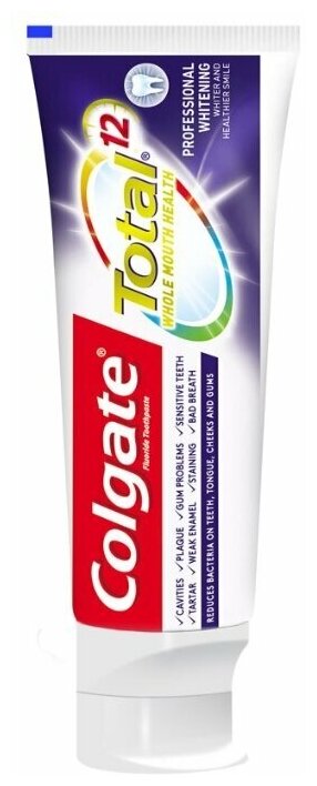 COLGATE TOTAL 12 Профессиональная Отбеливающая комплексная зубная паста, 75мл