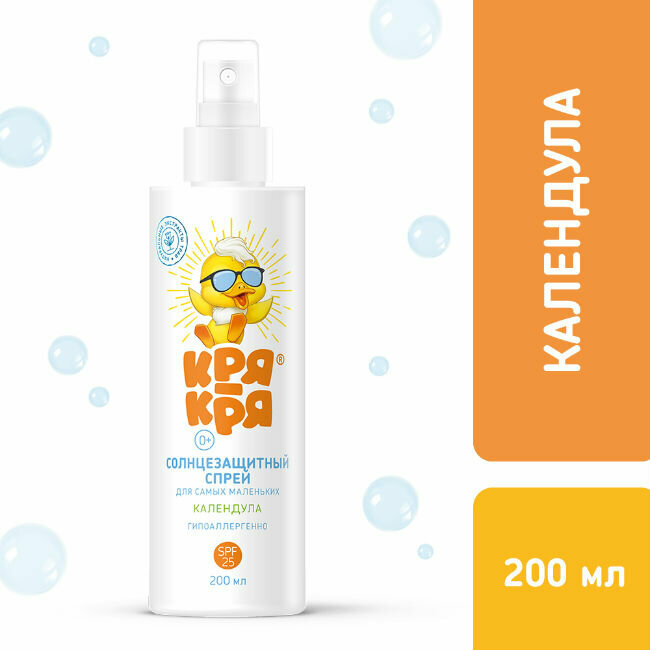 Солнцезащитный спрей детский Кря-Кря SPF 25, календула, 200 мл для самых маленьких