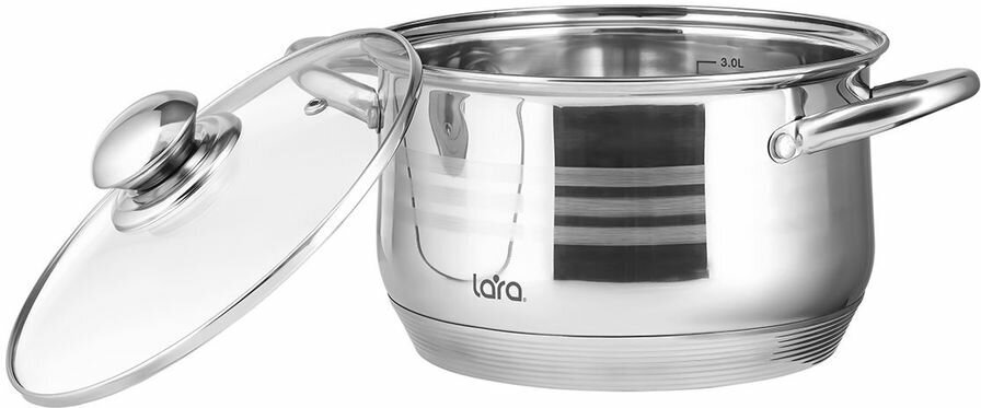 Кастрюля LARA (нерж) SONATA 18x11,5см, 2,9л, 7-cтупенчатое дно, комбо-полировка, крышка (LR02-581)