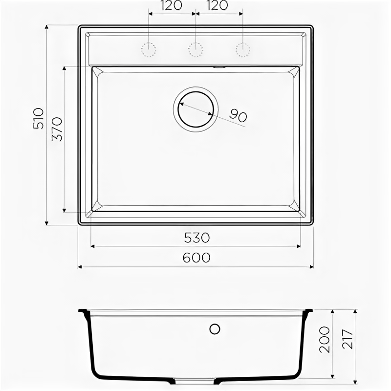 Кухонная мойка OMOIKIRI Daisen 60-BL (600 x 510 мм), врезная, Artgranit, черный Omoikiri 4993622