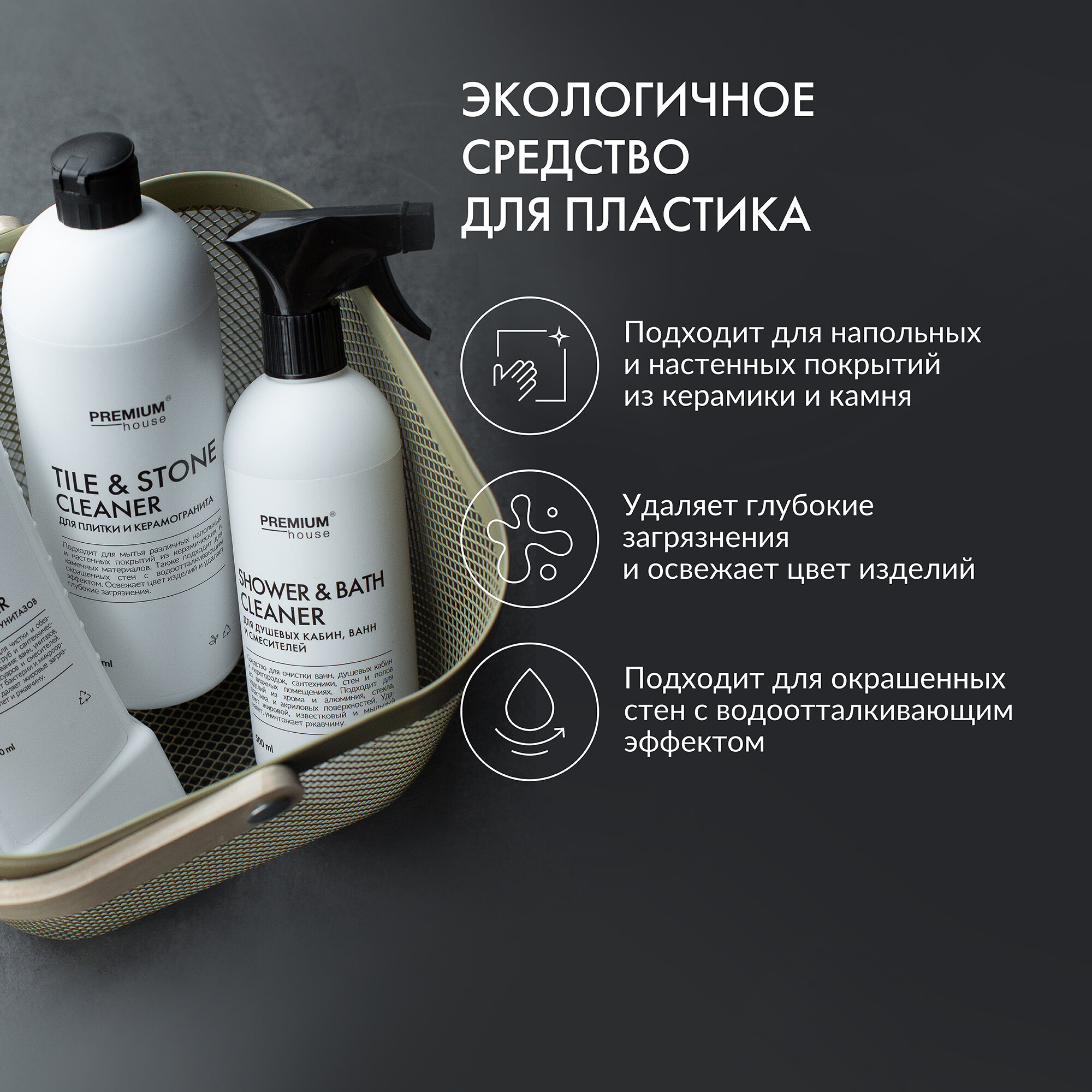 Моющее средство для кафельной плитки и керамогранита Premium House / Для ванной, кухни, туалета