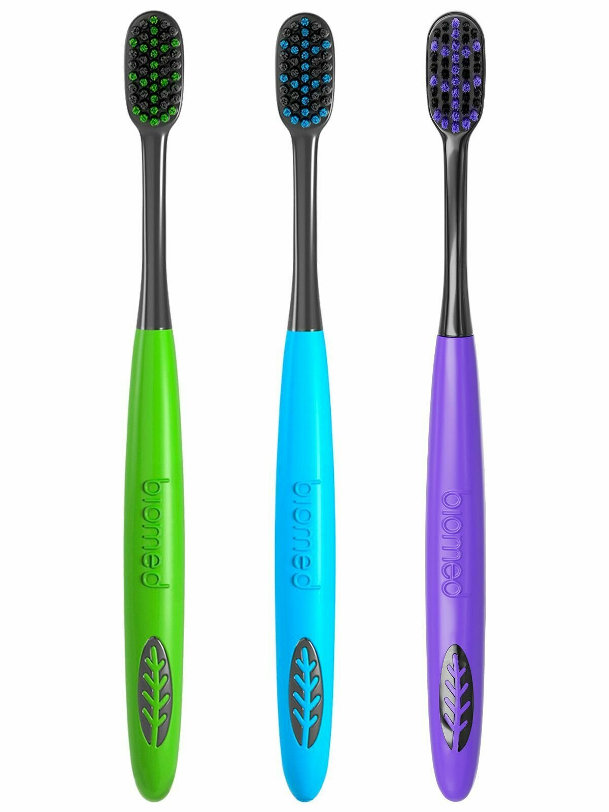 Зубная щетка Biomed Black Medium, зеленый/голубой/фиолетовый, 3 шт.