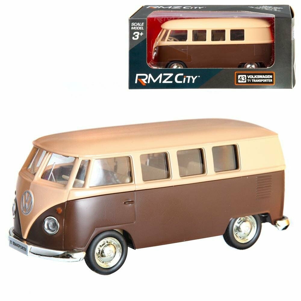 Автобус инерционный RMZ City 1:32 Volkswagen Type 2 (T1) Transporter, матовый бежевый с коричневым, металлический (554025M(I))
