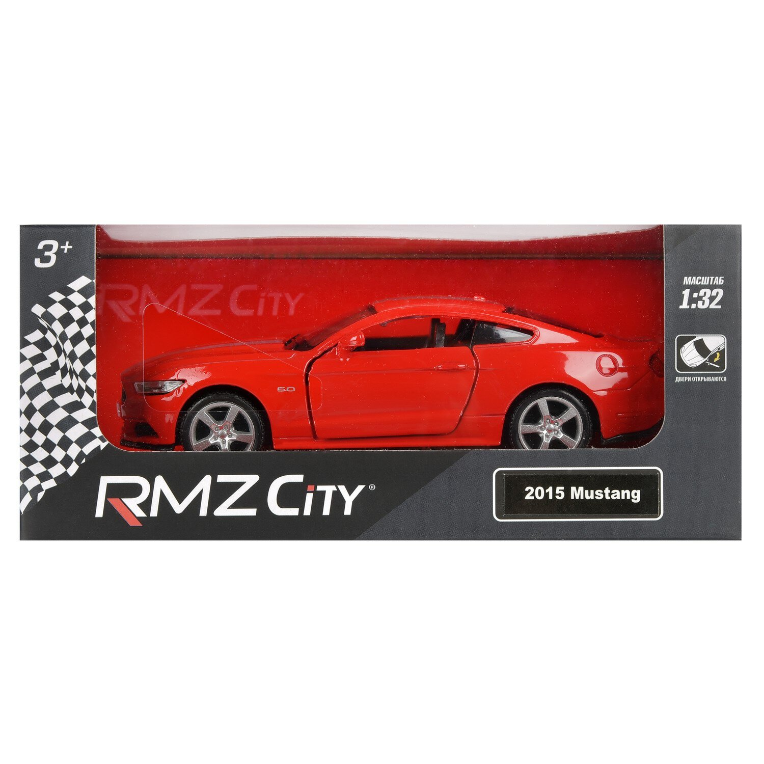 Машинка металлическая Uni-Fortune RMZ City серия 1:32 Ford Mustang GT 2015 with Strip инерционная, цвет красный, двери открываются