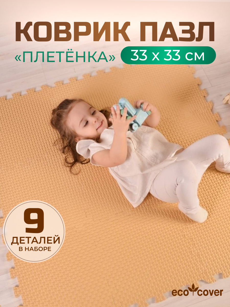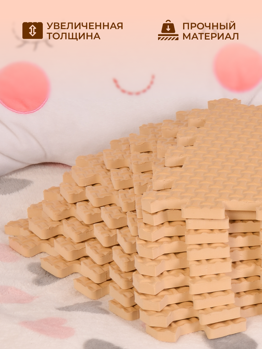 Мягкий пол универсальный Eco Cover бежево-коричневый, с кромками, 4 детали (1 деталь: 60*60 см) (60МП/БК)