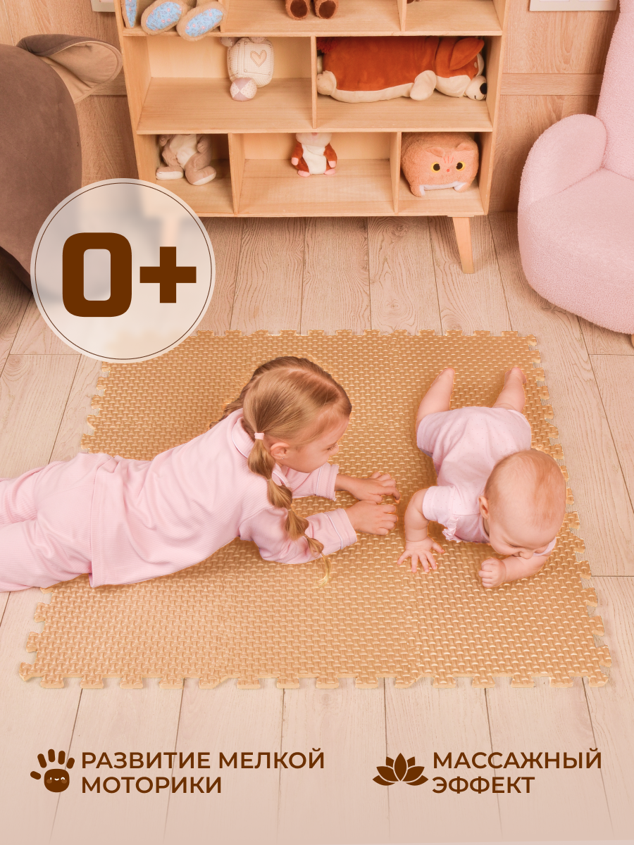 Мягкий пол универсальный Eco Cover бежево-коричневый, с кромками, 4 детали (1 деталь: 60х60 см) (60МП/БК)