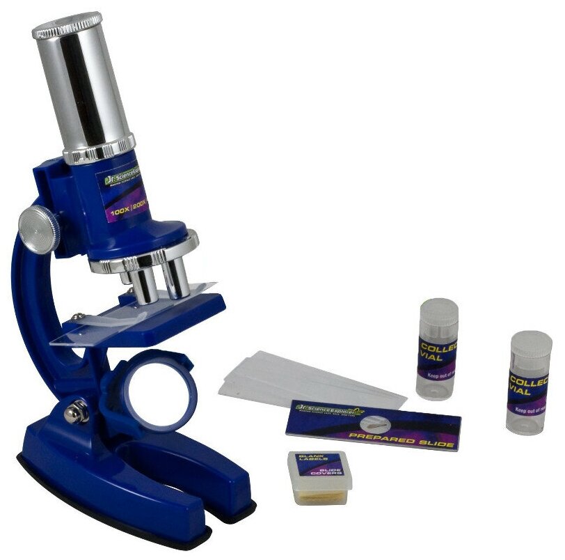 Микроскоп c аксессуарами увеличение 100х200х450х, 23 предмета, синий, металл, пластмасса