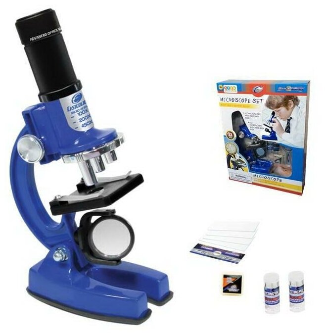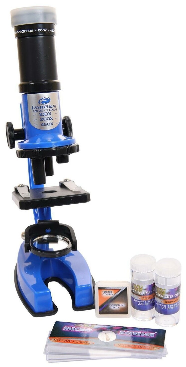 EASTCOLIGHT Микроскоп c аксессуарами увеличение 100х200х450х, 23 предмета, синий, металл, пластмасса