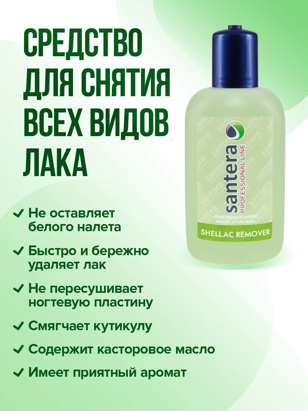 Жидкость для снятия лака, шеллака, гель-лака Santera Professional line 150 мл интересное: