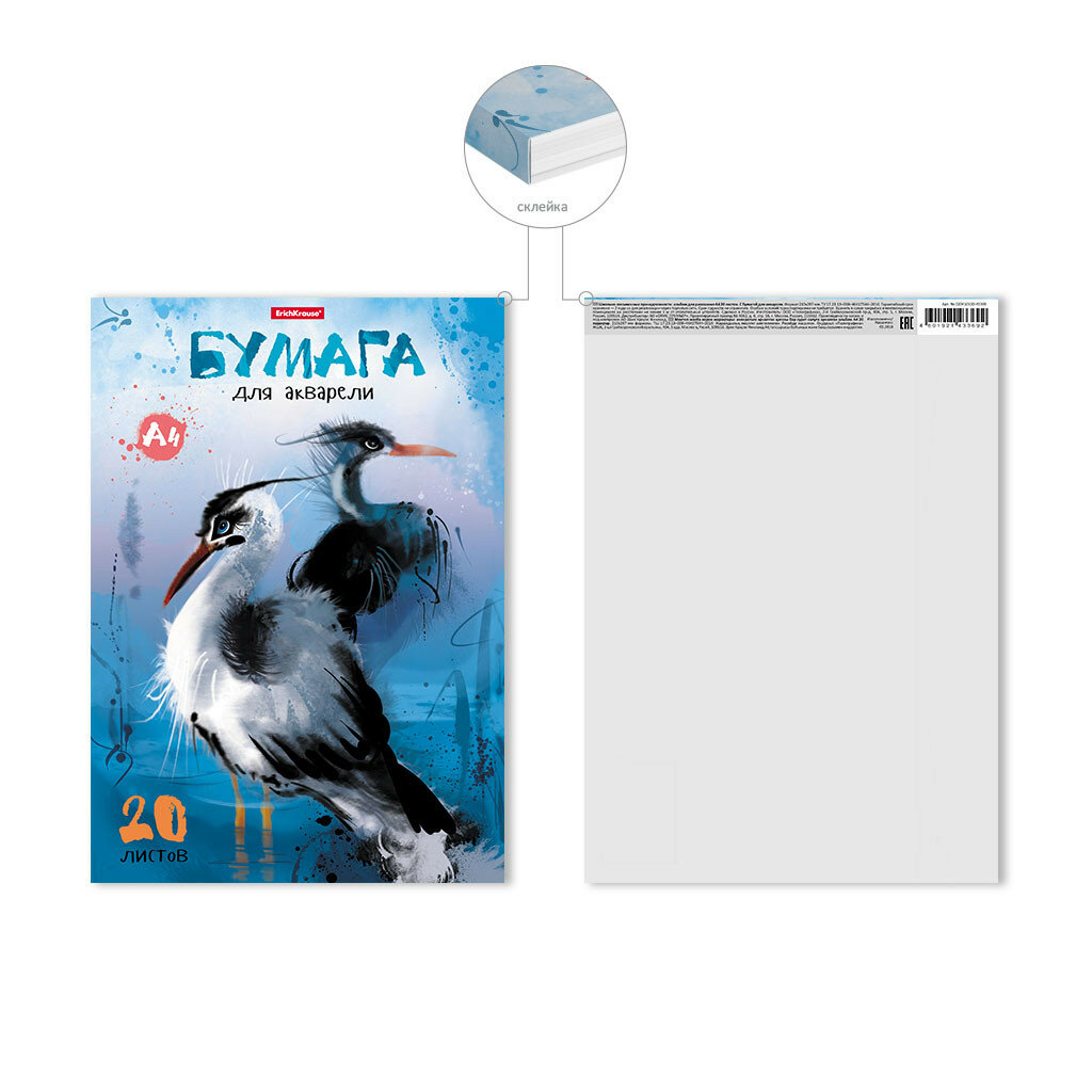 Альбом для акварели ErichKrause Птицы жарких стран/Цапля 43369 29.7 х 21 см (A4), 180 г/м², 20 л. голубой