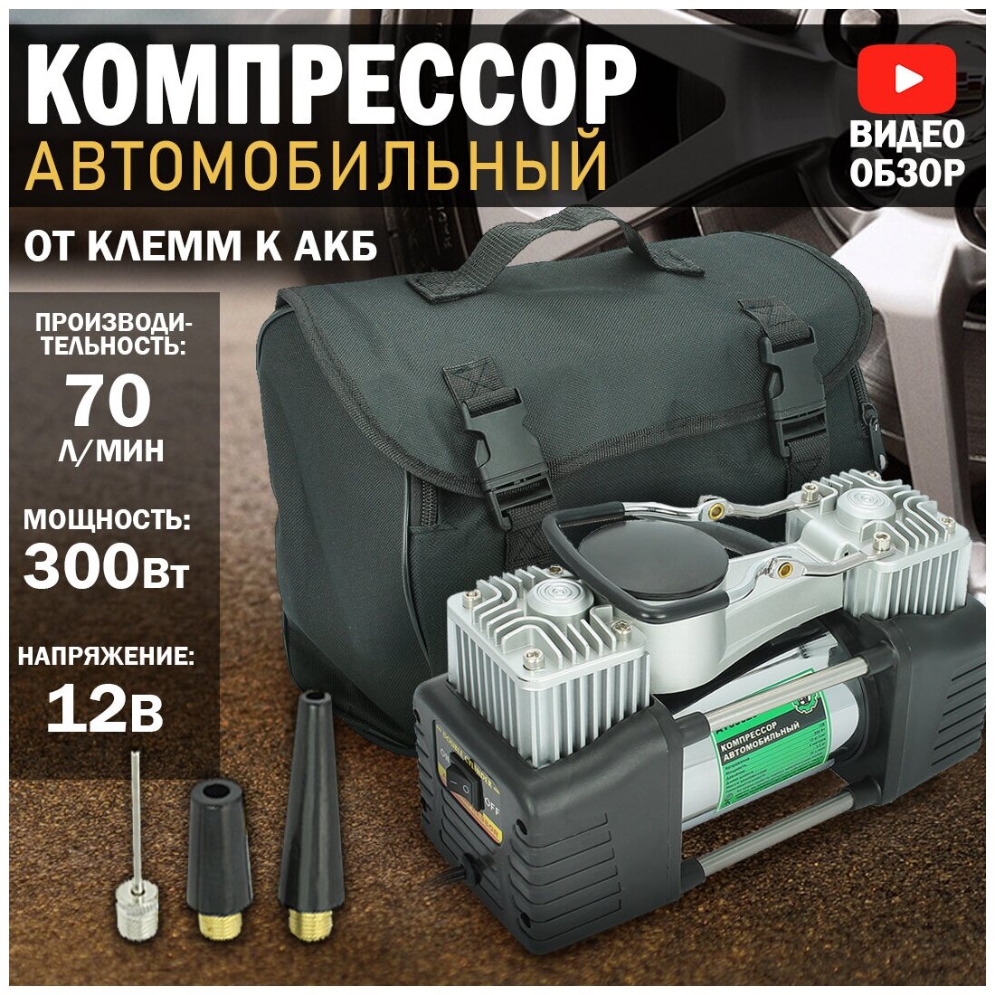 Компрессор Автомобильный Усиленный, 2-Х Цилиндр. (12b, 300вт, 70л/Мин, С Сумкой), Ac620 АТ арт. AT00620