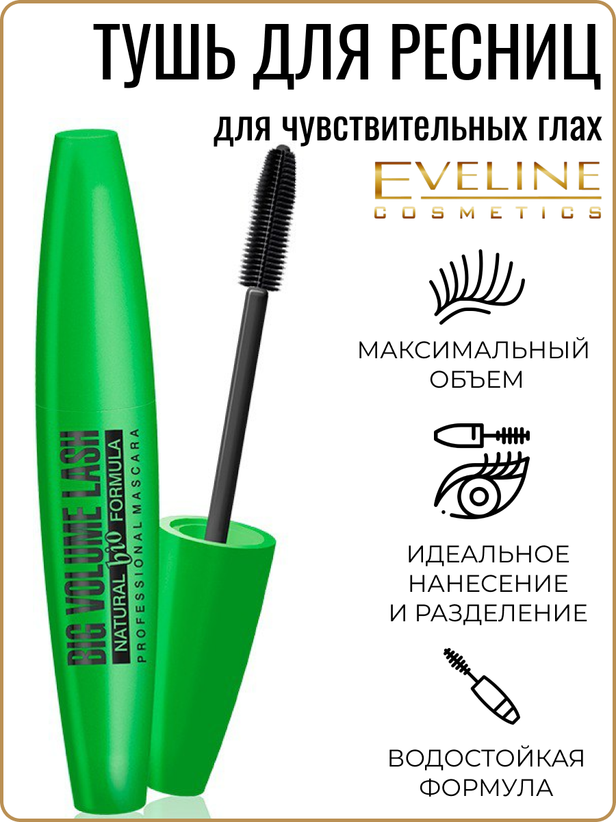 EVELINE Тушь для ресниц Big Volume Lash Natural Bio Formula, черный