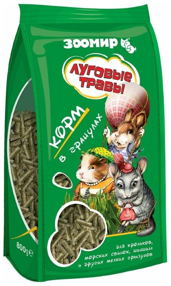 Корм "зоомир Луговые травы" для кроликов и грызунов, гранулы, 800 г