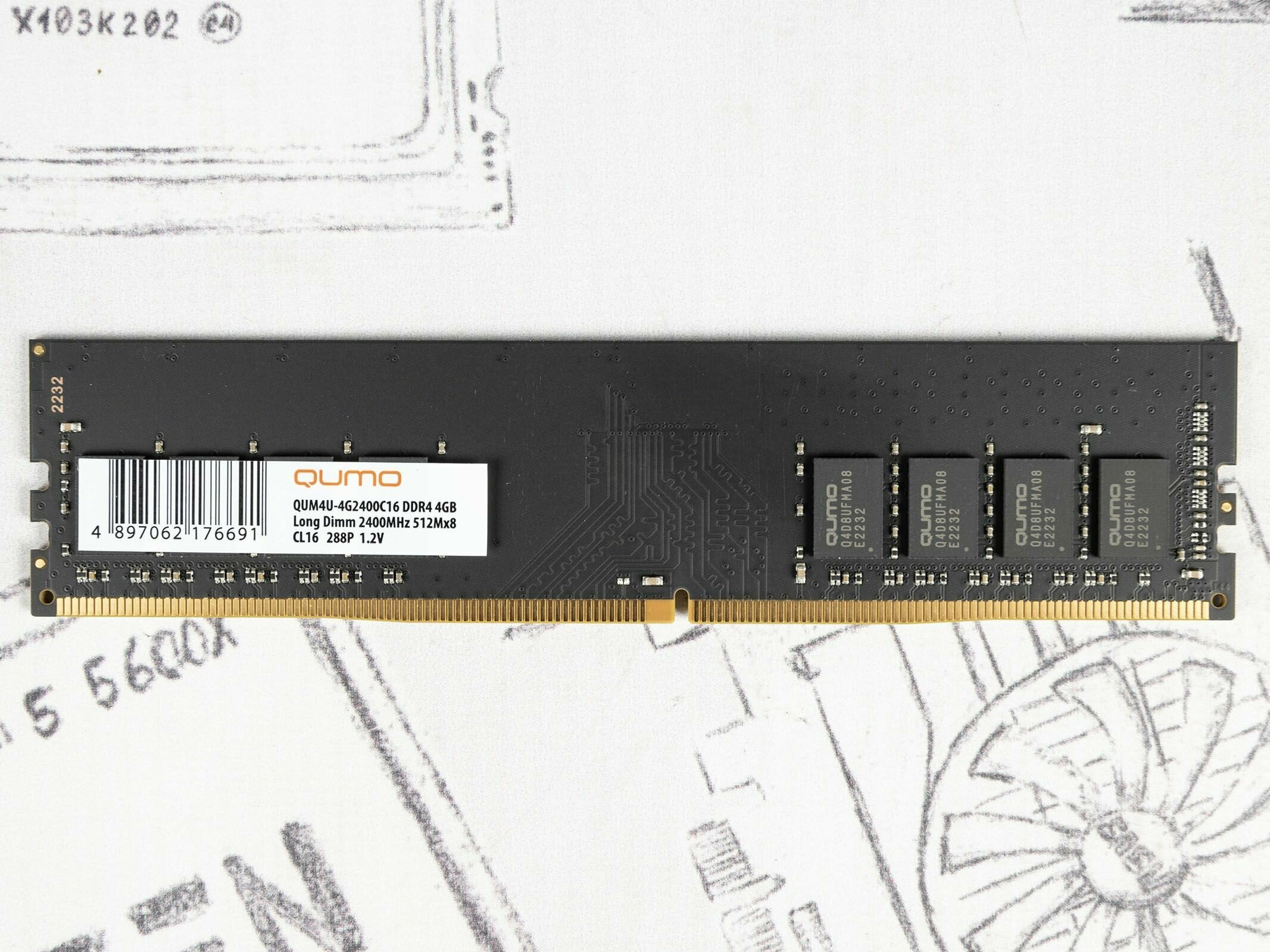 Оперативная память QUMO DDR4 DIMM 4GB PC4-19200, 2400MHz (QUM4U-4G2400C16)