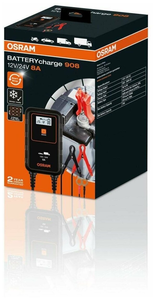 Зарядка автомобильного аккумулятора Charger908 OSRAM / арт. OEBCS908 - (1 шт)