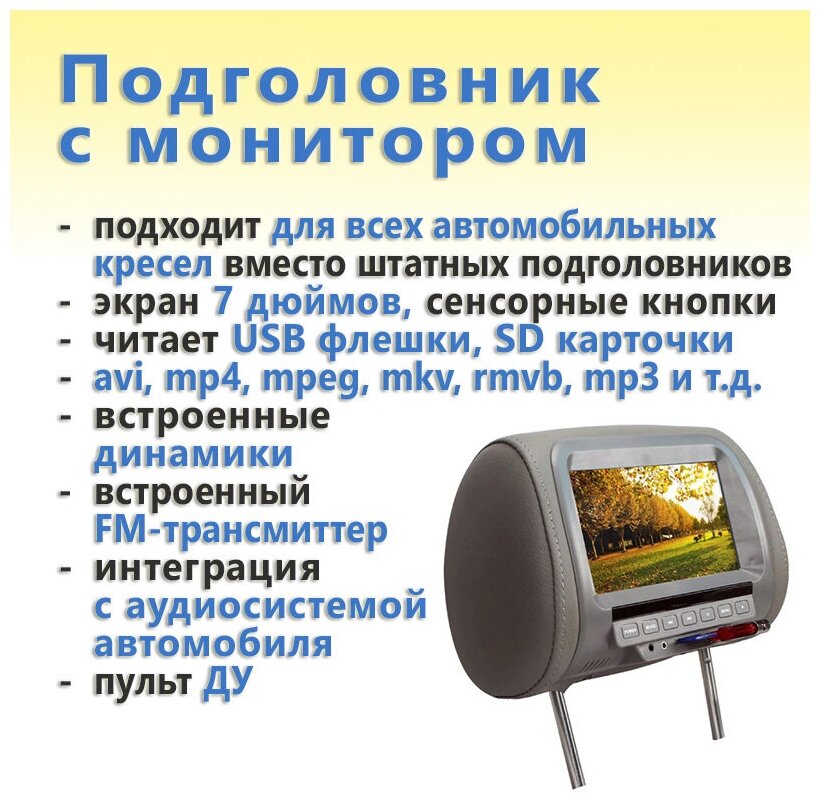 Подголовник с монитором MP5 (7 дюймов, USB флешки, SD карты, 800*480) серый интересное: