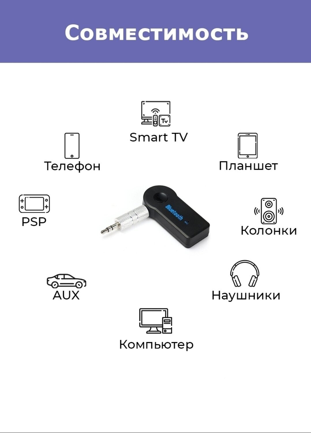 AUX Bluetooth адаптер / Блютуз адаптер в машину / Музыка для авто / Bluetooth Audio / Универсальный интересное: