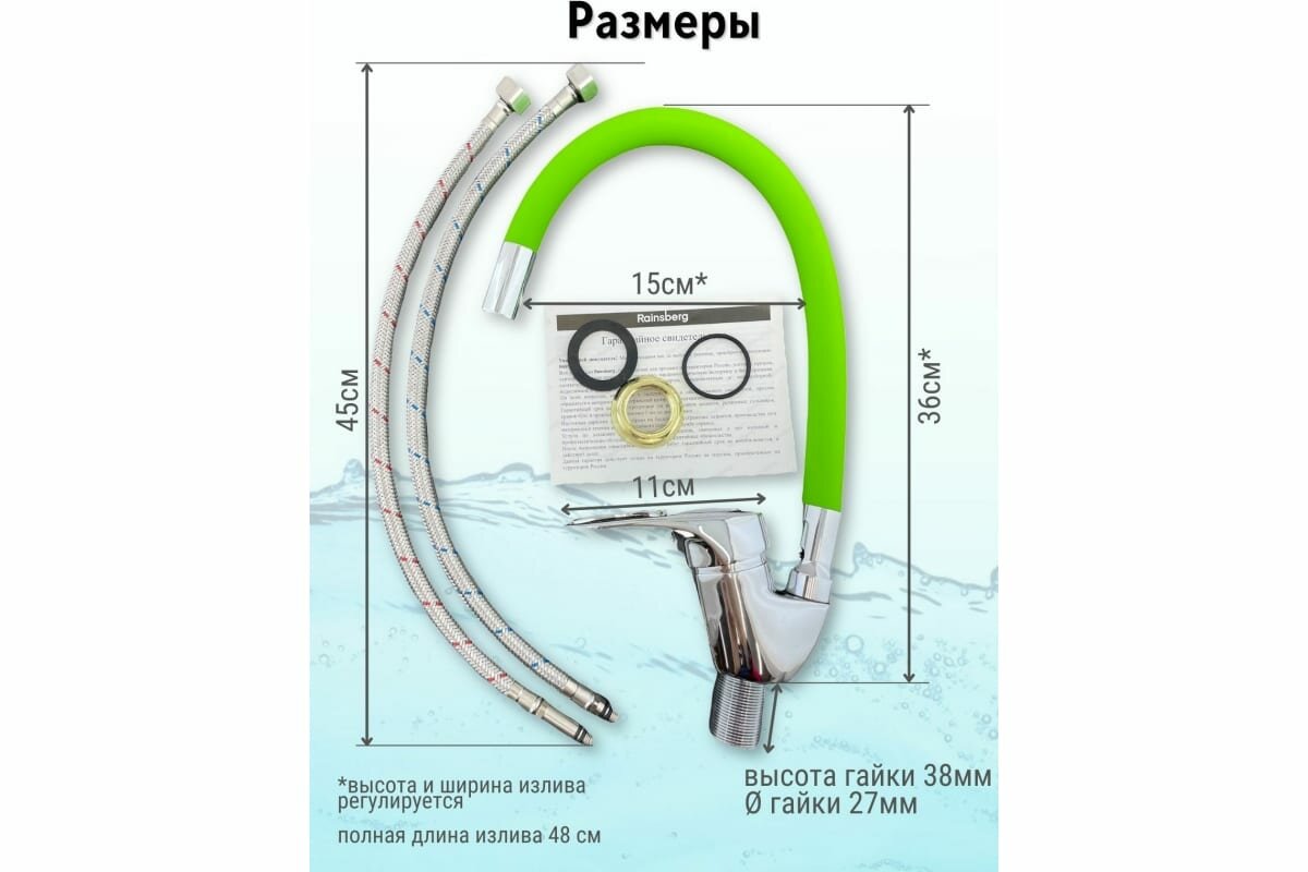 СохранитьСмеситель для кухни с гибким салатовым изливом Rainsberg R3193F-7 интересное: