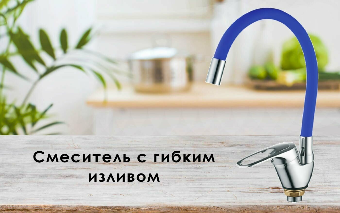 Смеситель д/кухни картридж d-35, на гайке, гибкий излив синий R3193F-3 RAINSBERG