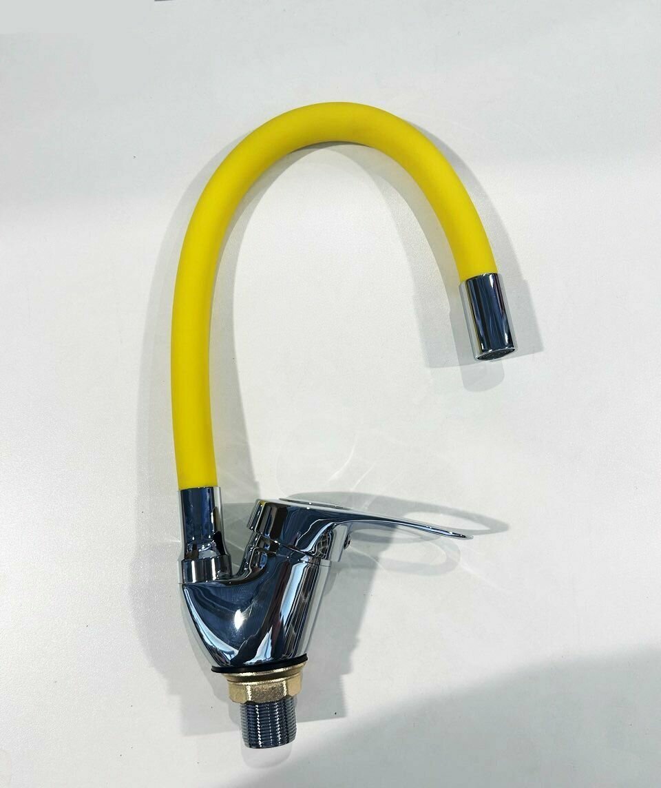 Смеситель д/кухни картридж d-35, на гайке, гибкий излив желтый R3193F-9 RAINSBERG