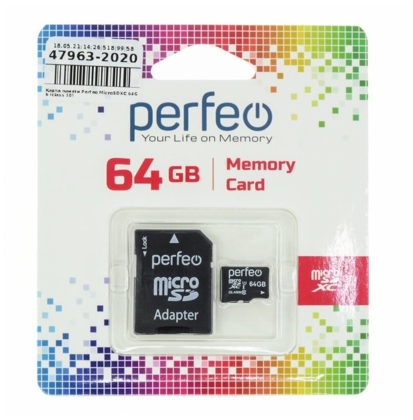 Карта памяти Perfeo microSDXC 64GB class10 UHS-I + SD адаптер