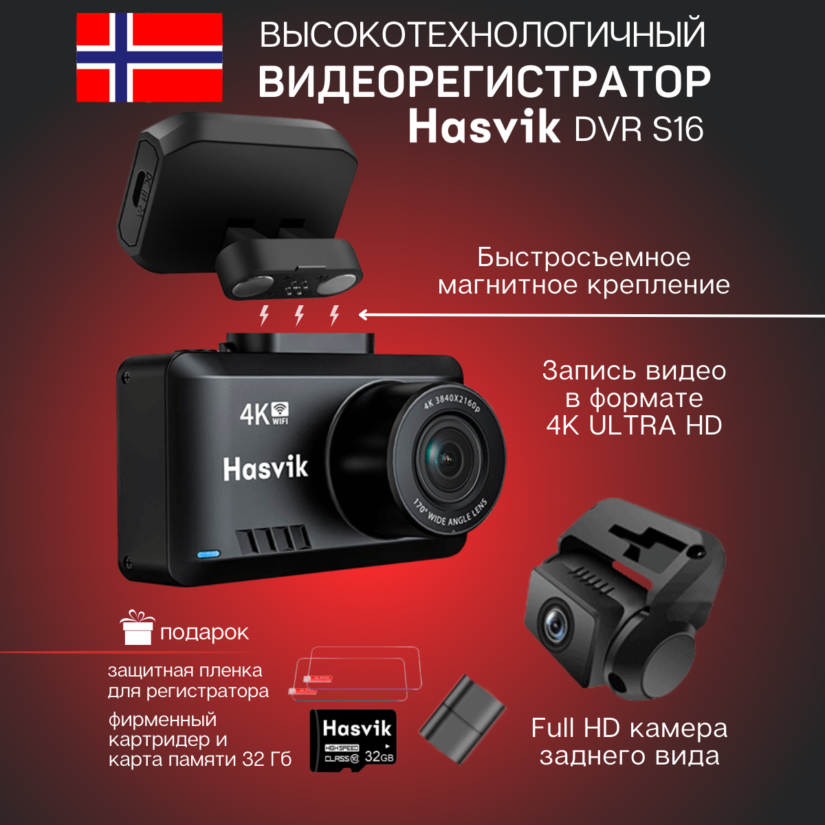 Купить Видеорегистратор Hasvik DVR S16, с задней камерой, Угол обзора 170 / 140, Качество 4К, Магнитное крепление, Подключение авторегистратора по Wi-Fi