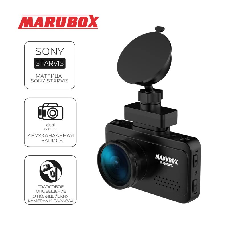 Marubox M350GPS Видеорегистратор с GPS/ГЛОНАСС базой камер, модулем Wi-Fi, магнитным креплением и с возможностью подключения второй камеры, регистратор для автомобиля, предупреждение водителя о камерах на дороге