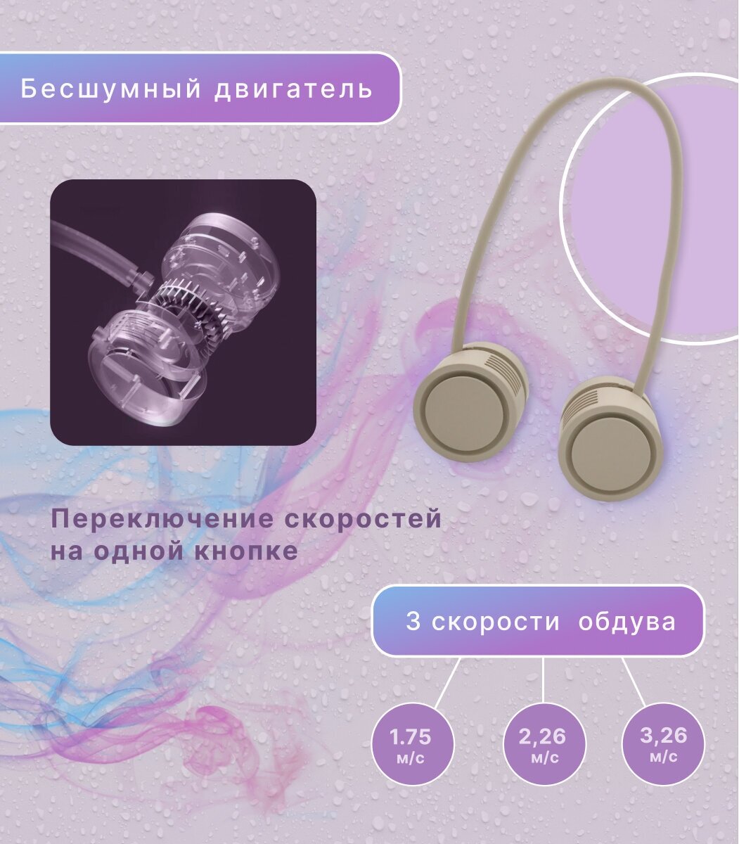 Портативный подвесной вентилятор на шею, складной, беспроводной, бежевый интересное: